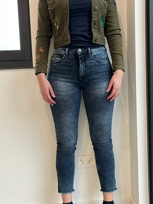 GG019: Dark Blue Raw Hem Skinny Stretch Jeans